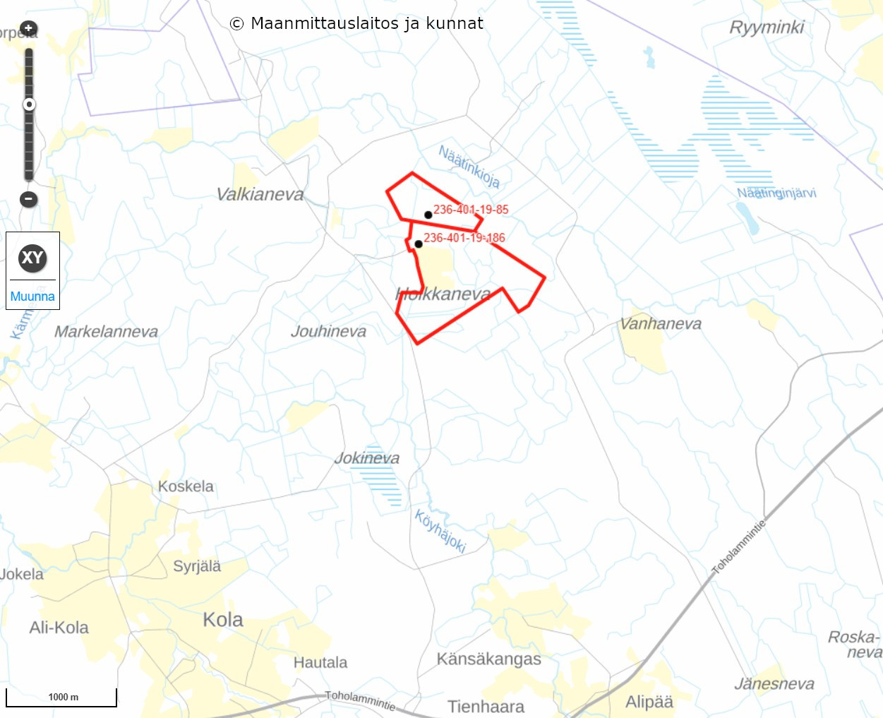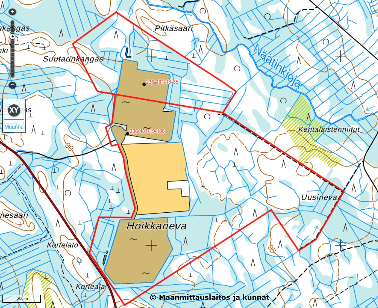 Kaustisen Hoikkanevalla Rikastetien varrella myynnissä kaksi vierekkäistä tilaa, mitkä entistä turvetuotantoaluetta ja joiden turvatuotanto on loppunut 2024. Suurempi tila Metsola 236-401-19-186 on pinta-alaltaan kiinteistörekisteriotteen mukaan 75,49 ha ja pienempi tila Asuntola 236-401-19-85 puolestaan 24,69 ha. Tilalla Metsola metsätalousmaata noin 46 ha, osittain taimettunutta entistä turvetuotantoaluetta 11,5 ha ja noin 18 ha osin veden peittämää entistä turvetuotantoaluetta. Tilalla Asuntola metsätalousmaata noin 18,8 ha ja entistä turvetuotantoaluetta noin 4,5 ha. Molempien tilojen metsämaat pääasiassa avohakattuja, säästöpuuryhmiä jätetty siemenpuiksi. Hyvät tieyhteys. Tilojen alueella ei ole kaavaa. Tiloihin kuuluu osuudet yhteisiin alueisiin ja erityisiin etuuksiin kiinteistörekisteriotteiden mukaisesti. Tilat ovat malminetsintäaluetta. Tilat on vuokrattu Valorem Energies Finland Oy:lle 12.12.2023 alkaen 50 vuoden ajaksi aurinkovoimapuistoa varten, mutta hankkeen toteutuminen on tämän hetkisen tiedon valossa epävarmaa.